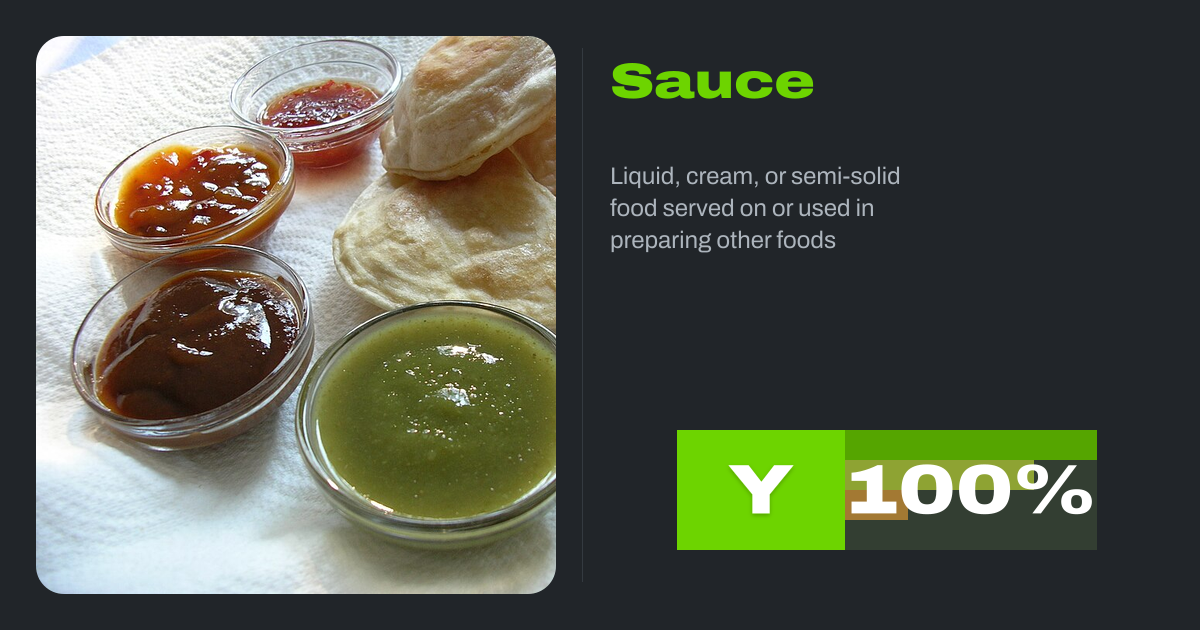 Liquid, cream, or semi-solid food served on or used in preparing other foods