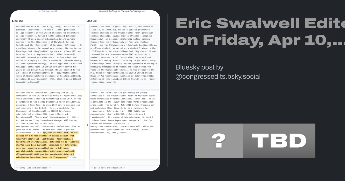 #EricSwalwell #Congress #Wikipedia