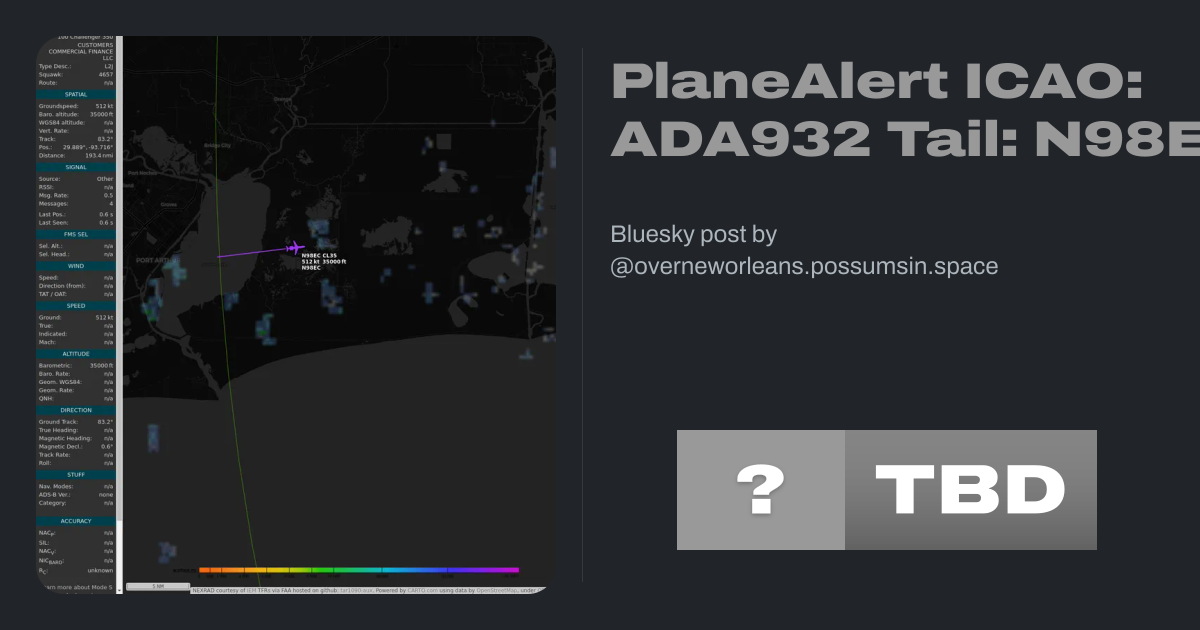PlaneAlert ICAO: ADA932 Tail: N98EC Flt: N98EC