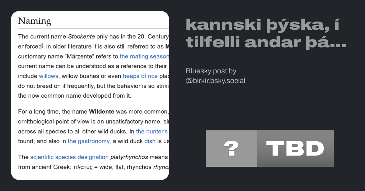kannski þýska, í tilfelli andar þá er stock = prik/stilkur