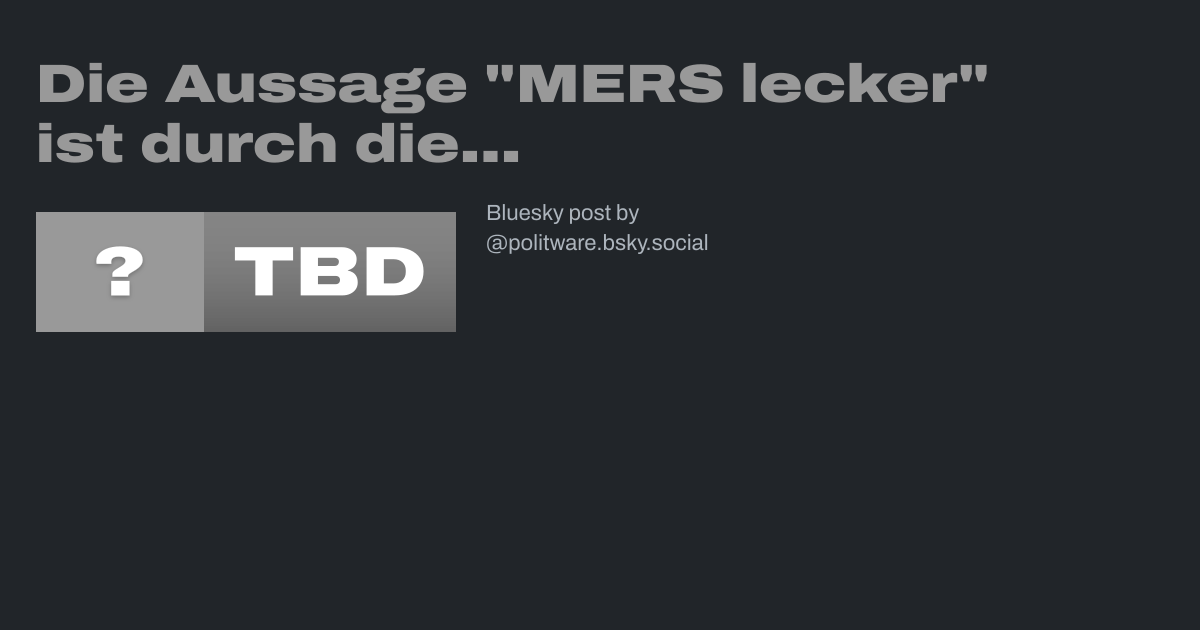 Die Aussage "MERS lecker" ist durch die Meinungsfreiheit gedeckt. Aber wie kann man MERS für lecker halten? de.wikipedia.org/wiki/MERS-CoV