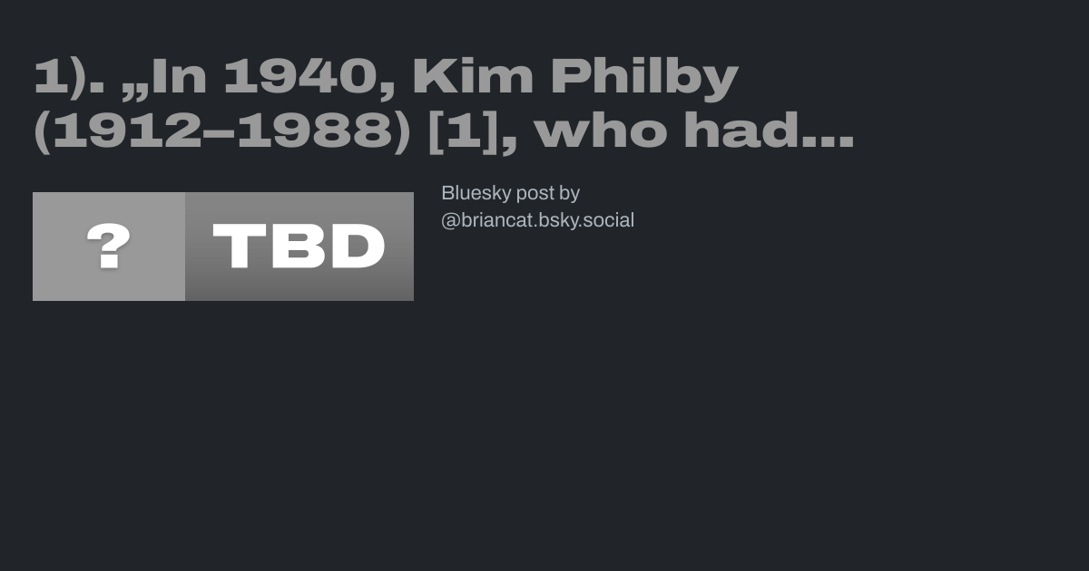 βIn 1940, Kim Philby (1912β1988) [1], who had been working as a journalist, was recommended by Guy Burgess (1911β1963) [2], who had graduated from his position in the BBC to MI6, for the Secret Intelligence Service.