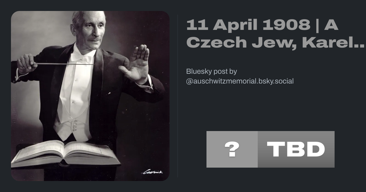 11 April 1908 | A Czech Jew, Karel AnÄerl, was born. A conductor and composer.