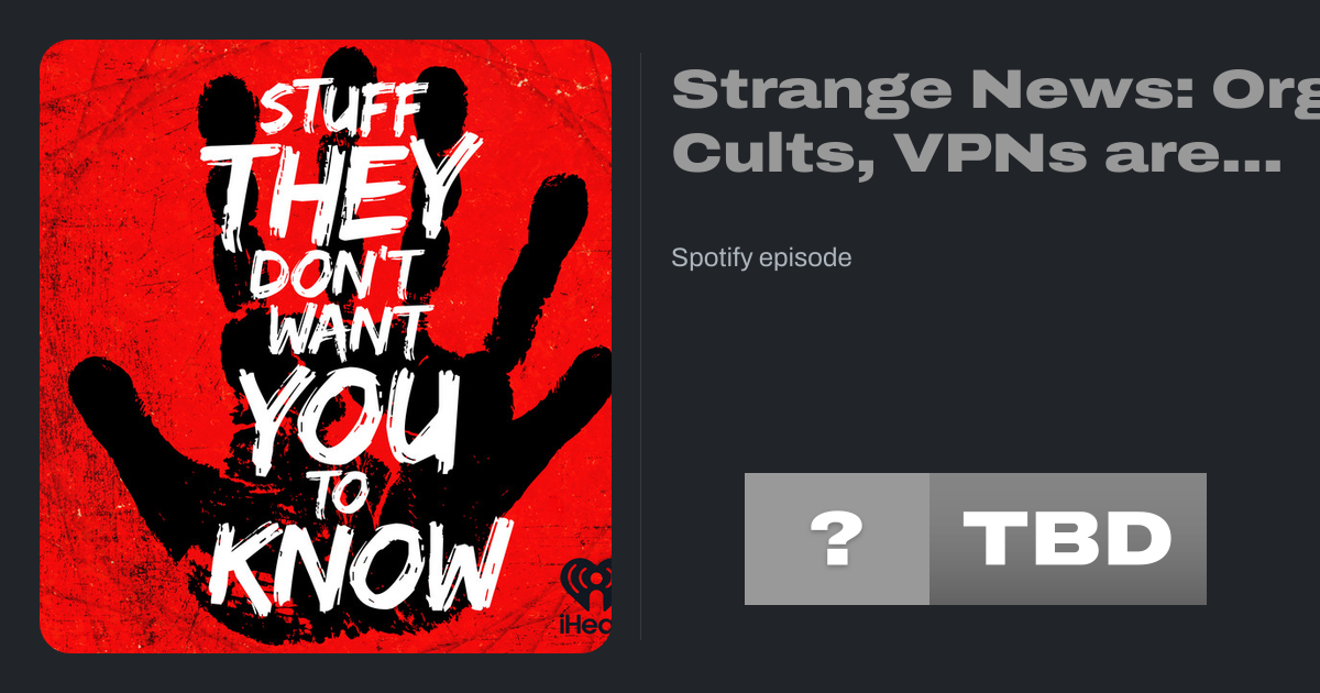 Strange News: Orgasm Cults, VPNs are Getting Shady, a Kit-Kat Heist, a White House Bunker, and More - Stuff They Don't Want You To Know | Podcast on Spotify open.spotify.com/episode/1ZuI...