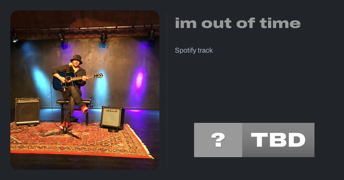 This is the husband of a friend of mine. I heard him live a couple of years ago, and was quite impressed. Very Bob Dylan-esque, but that's not a bad thing. I especially like I'm out of time, that one has been playing on repeat tonight. I think he deserves more than three monthly ...