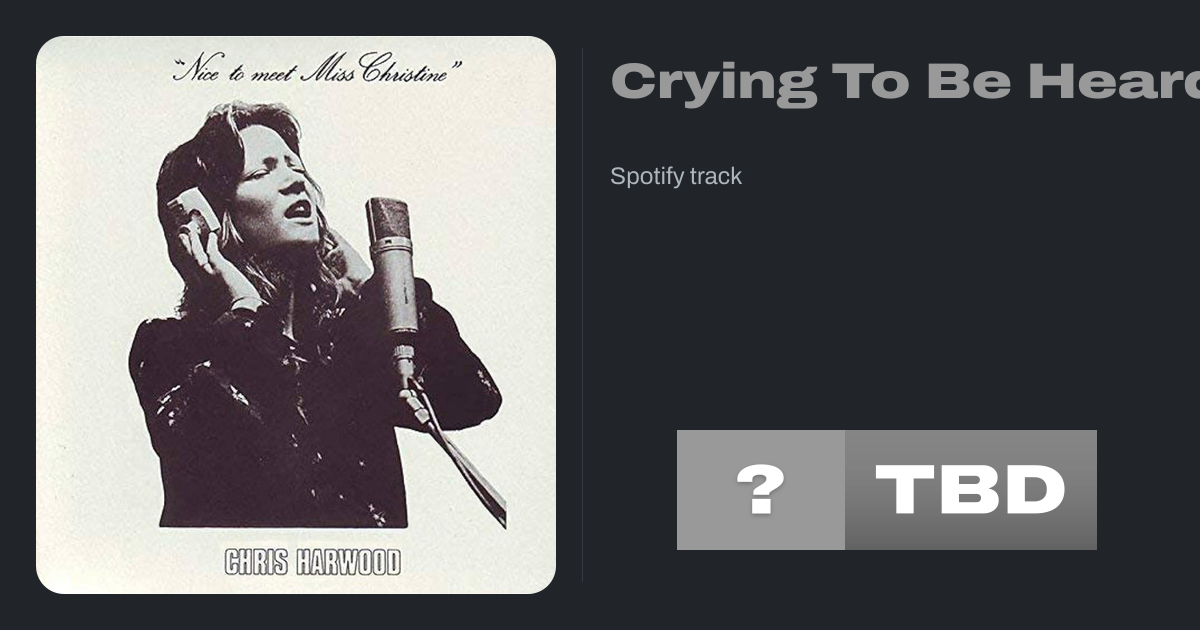 A britânica Chris Harwood gravou apenas um álbum, em 1970. Mesmo contando com músicos excelentes, que ela conhecia dos pubs onde se apresentava, foi um fracasso de vendas, o que a fez desistir da carreira.