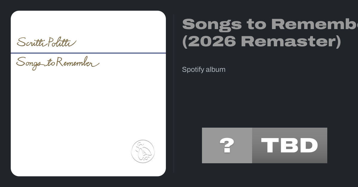 I have been informed that the absolutely unhinged Scritti Politti debut got remastered and reissued finally, huge news for me specifically open.spotify.com/album/164VGA...