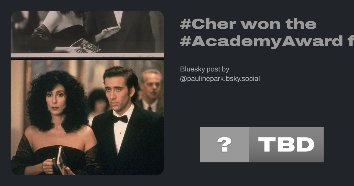 #Cher won the #AcademyAward for best actress #OnThisDay in 1988 for #Moonstruck; Norman Jewison's rom-com brilliantly combines scenes from a Met production of "La Bohème" with music from Puccini's #opera
