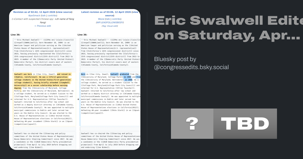 #EricSwalwell #Congress #Wikipedia