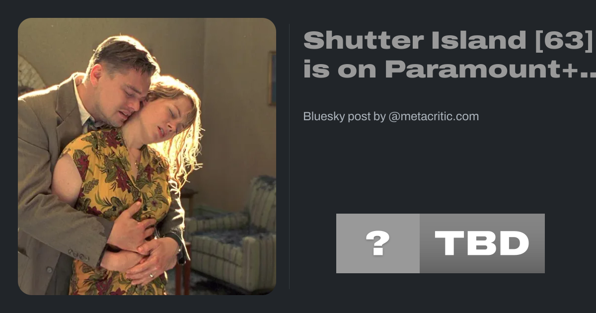 Shutter Island [63] is on Paramount+ www.metacritic.com/movie/shutte... #11pmspecial "DiCaprio, in his most haunting and emotionally complex performance yet, is the vessel Scorsese uses to lead us through the film’s labyÂrinth." - Peter Travers, Rolling Stone