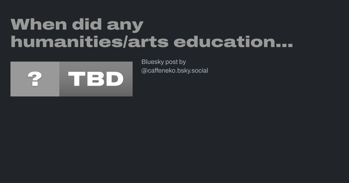When did any humanities/arts education cease to be required by undergrads, so that no one post-early 90s ever learned of postmodern/critical theory? I feel like pro-AI tech lords could have been reined in if ppl had learned the dangers of simulacra. en.wikipedia.org/wiki/Simulac....