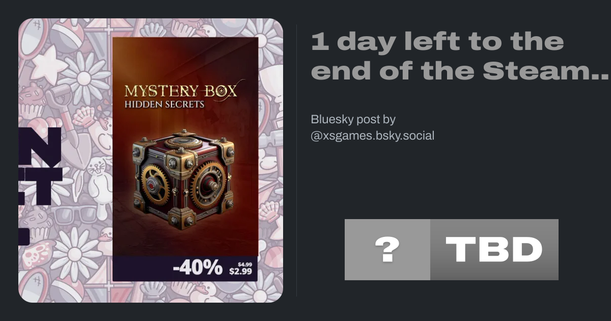 1 day left to the end of the Steam Hidden Objects Fest ๐ get Mystery Box now at 40% OFF ๐ฅ