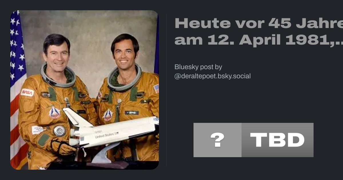 Heute vor 45 Jahren, am 12. April 1981, startete mit der Mission STS-1 der Raumfähre Columbia erstmals das wiederverwendbare Space Shuttle mit dem Commander John Watts Young und dem Pilot Robert Crippen ins All. Der Raumflug dauerte bis zum 14. April. de.wikipedia.org/wiki/STS-1