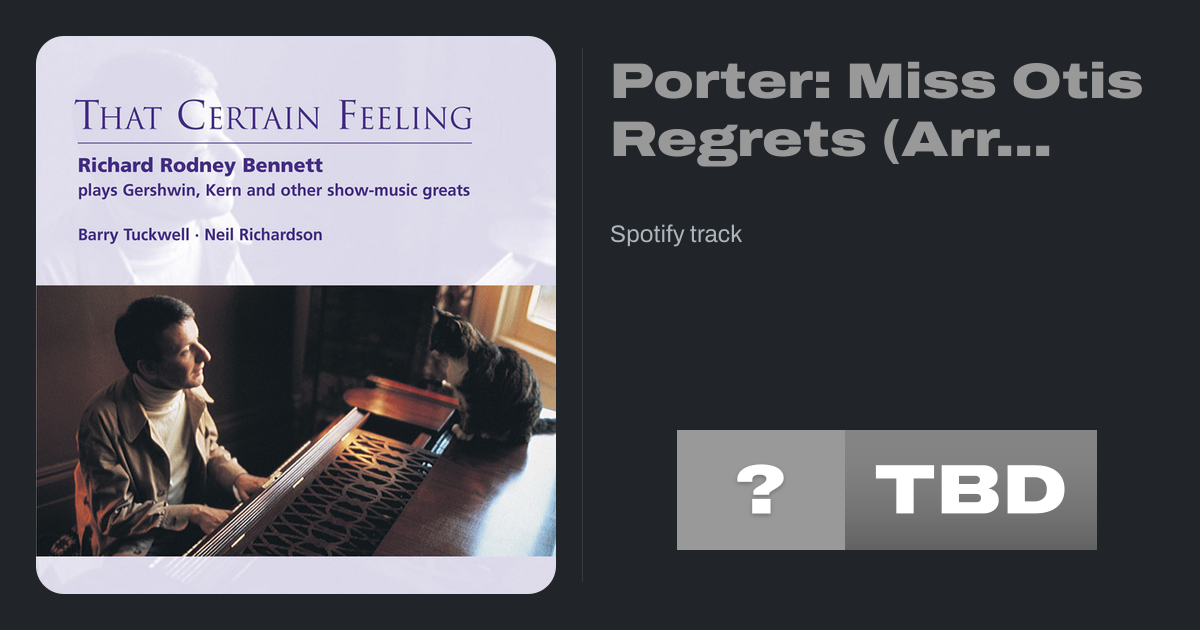 Porter: Miss Otis Regrets (Arr. Rodney Bennett)