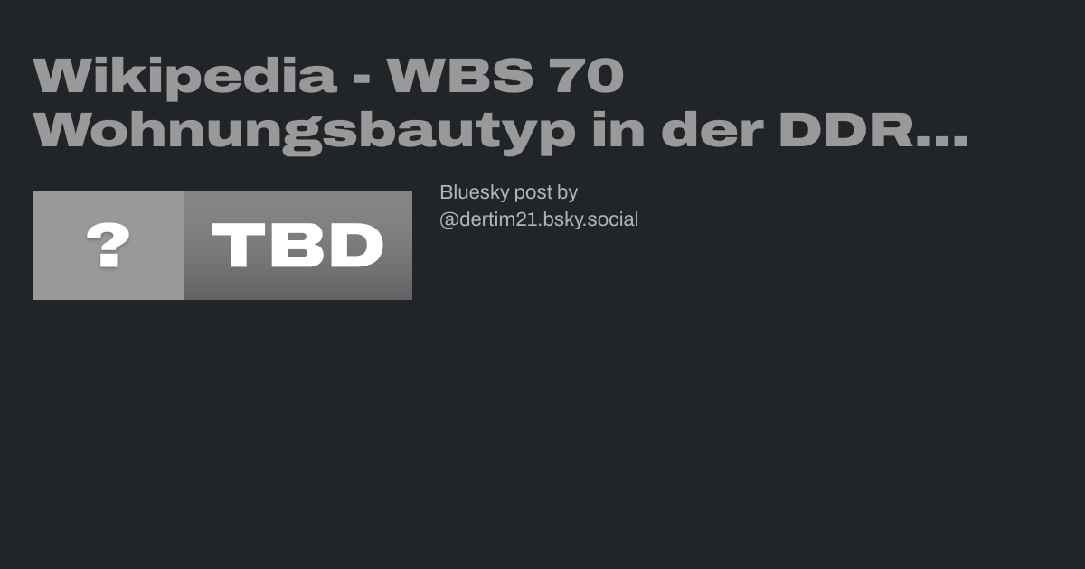 "WBS 70 war ein in der Deutschen Demokratischen Republik (DDR) verwendeter Typenbau eines Wohnhauses in Plattenbauweise."