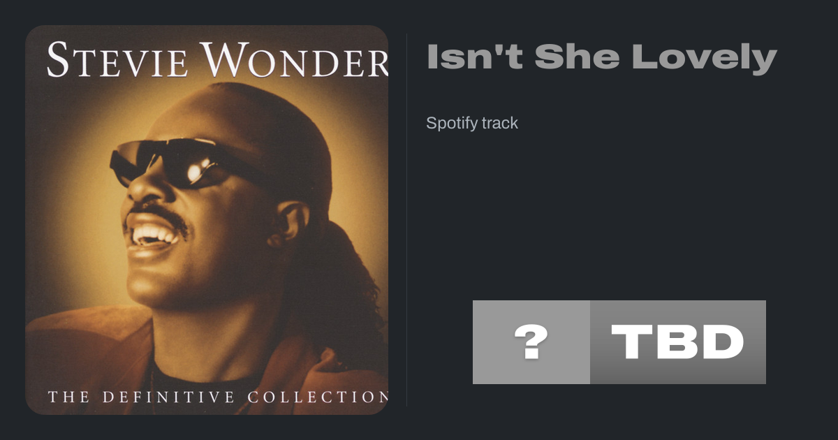 #NowPlaying ๐ถ "Isn't She Lovely" from "The Definitive Collection (Deluxe Edition)" by Stevie Wonder, 2002-10-29 ๐ฟ ๐