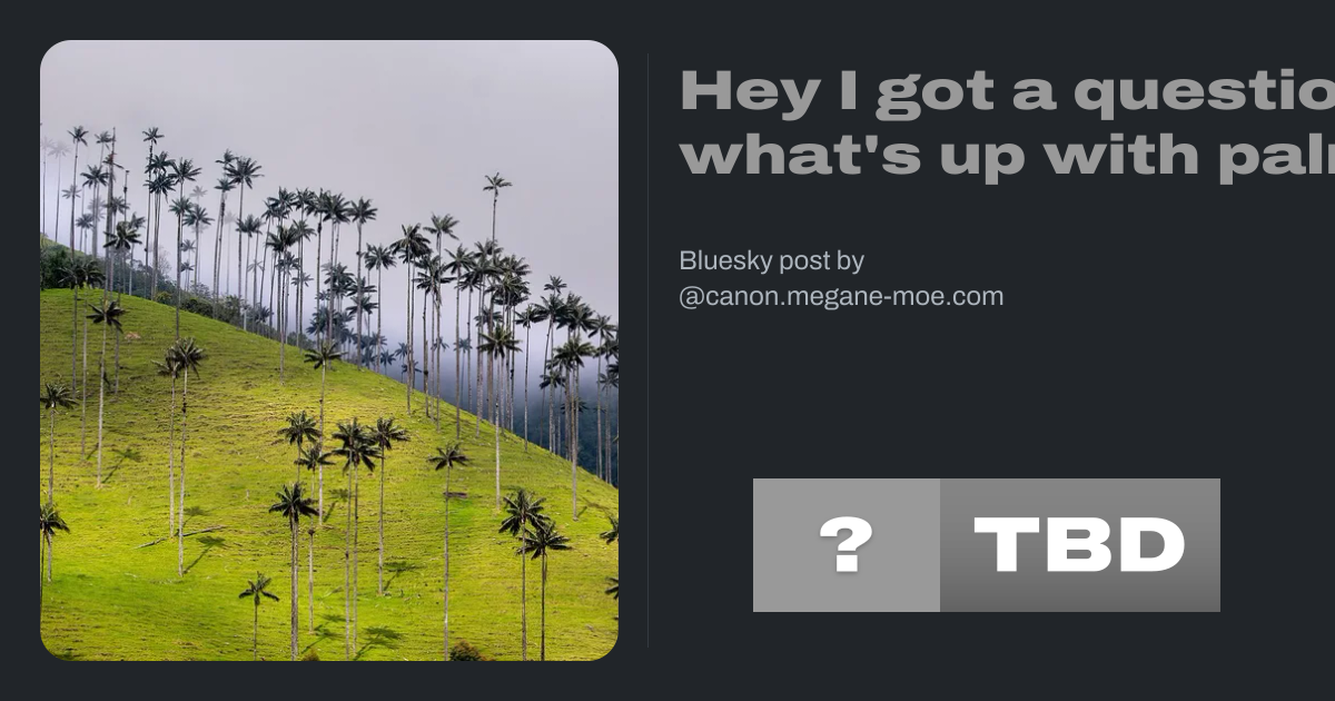 Hey I got a question what's up with palm trees. Why do they look like they have a more confusing height/width ratio than I do (from en.wikipedia.org/wiki/Cocora_...)