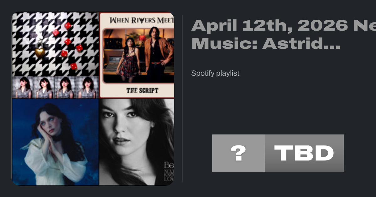 April 12th, 2026 New Music: Astrid Pierce, When Rivers Meet, Bea, Holly Humberstone | IFR New Music Playlist