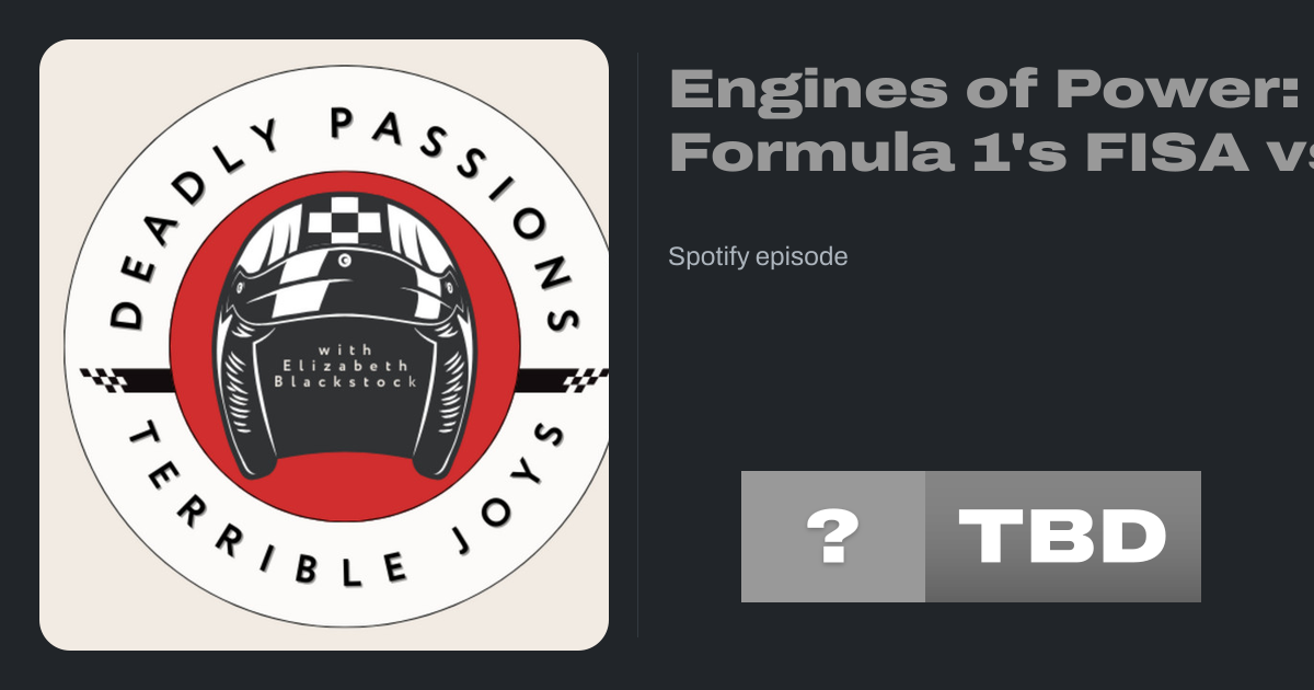 This clip is pulled from the Deadly Passions, Terrible Joys podcast episode titled, “Engines of Power: Formula 1's FISA vs FOCA Conflict Part 1 (1964-1977).” Give it a listen, available now wherever you get your podcasts.
