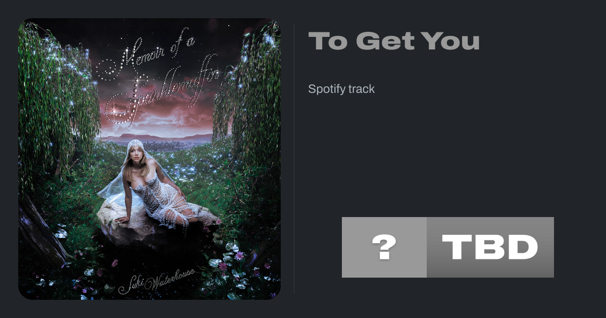I’m currently playing "To Get You" by Suki Waterhouse at April 12, 2026 at 09:48PM