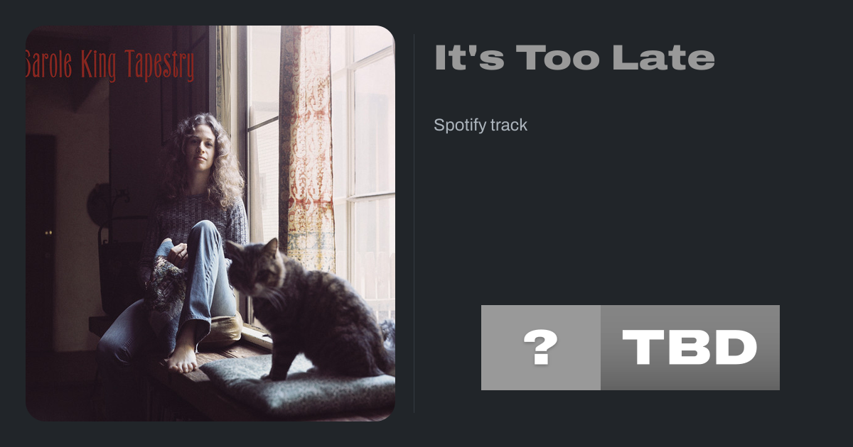 @carolekingofficial.bsky.social It’s Too Late open.spotify.com/track/12q3V8...