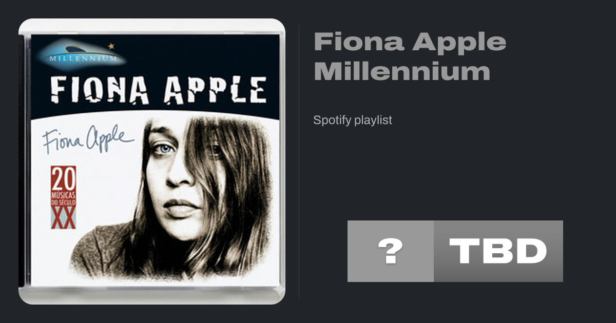 Fui inventar de fazer uma playlist de melhores da Fiona Maçã e comprovei que é muito difÃcil escolher música