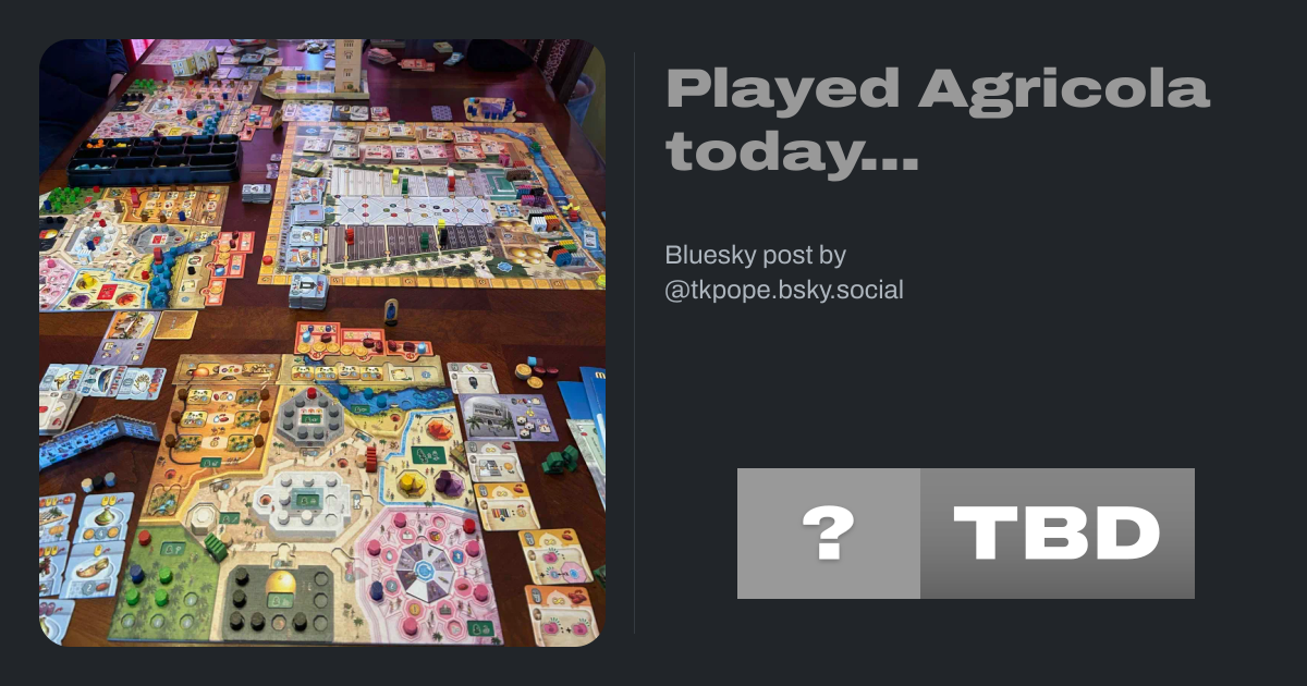 Played Agricola today boardgamegeek.com/boardgame/31... #bggplay via @boardgamegeek.com