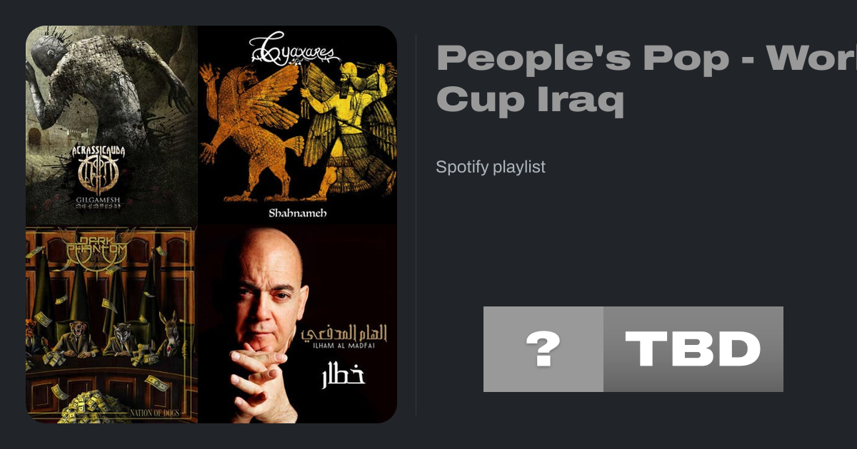 O why not: here is my full Iraqi shortlist if anyone's interested. I would say my "Mesopotamian Metal Main" already covers that genre, but the second half of this list has the pop stuff and these are all songs I quite like and seriously considered.