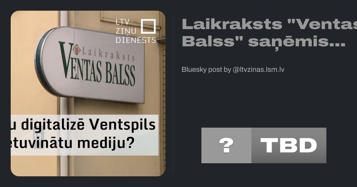 Laikraksts "Ventas Balss" saÅÄmis Eiropas fonda lÄ«dzekļus digitalizÄcijai, izdevums cer paplaÅ”inÄt savu auditoriju. Tas gan rada zinÄmus riskus, jo ir vairÄki signÄli par to, ka laikraksts ir konkrÄtai partijai izdevÄ«gas informÄcijas izplatÄ«tÄjs. open.spotify.com/episode/6J5B...