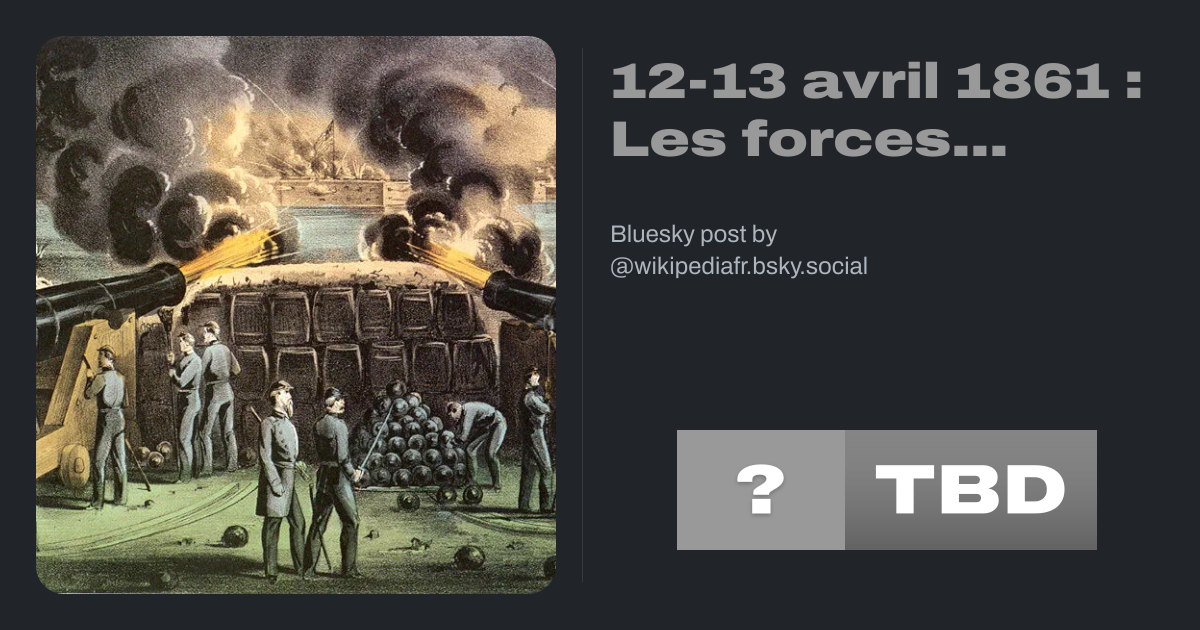 12-13 avril 1861 : Les forces confĂ©dĂ©rĂ©es dĂ©logent la garnison fĂ©dĂ©rale du fort Sumter, situĂ© Ă lâentrĂ©e de la baie de Charleston en Caroline du Sud.
