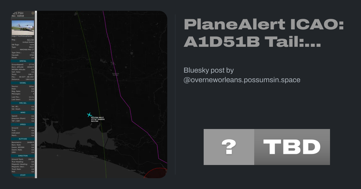 PlaneAlert ICAO: A1D51B Tail: NX217SH Flt: N217SH