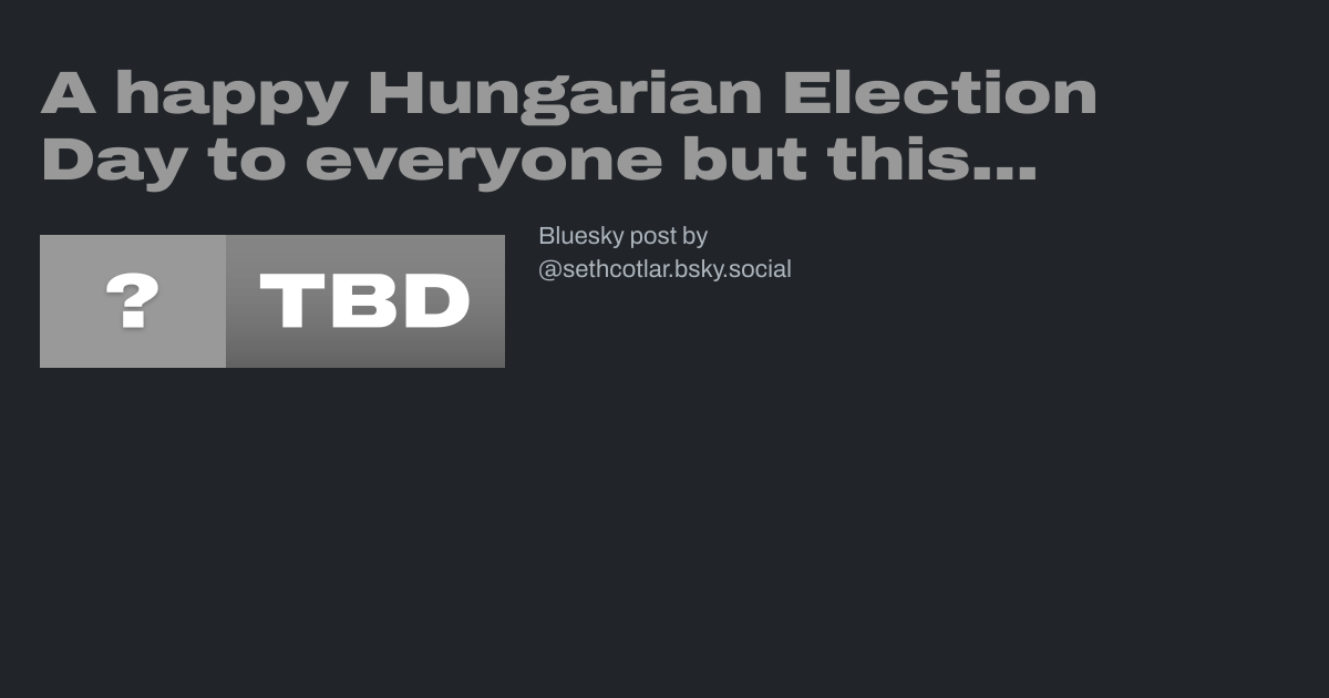 A happy Hungarian Election Day to everyone but this guy, one of the leading, English-speaking Orban fluffers for the past decade, a former National Review editor and Margaret Thatcher staffer. en.wikipedia.org/wiki/John_O%...