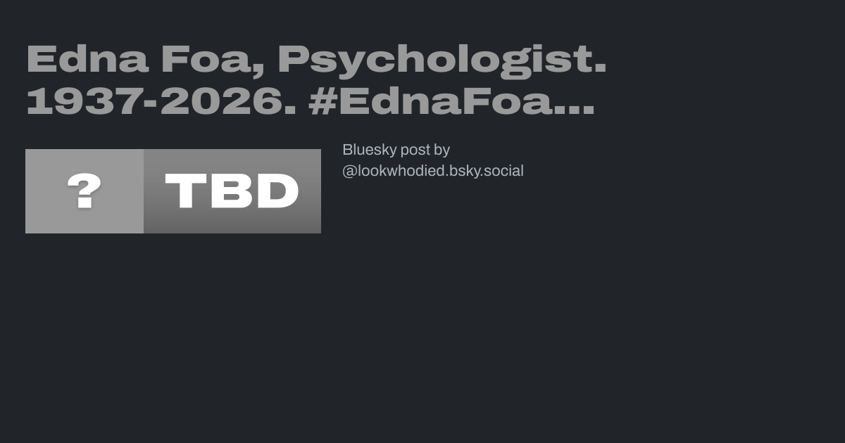 Edna Foa, Psychologist. 1937-2026. #EdnaFoa