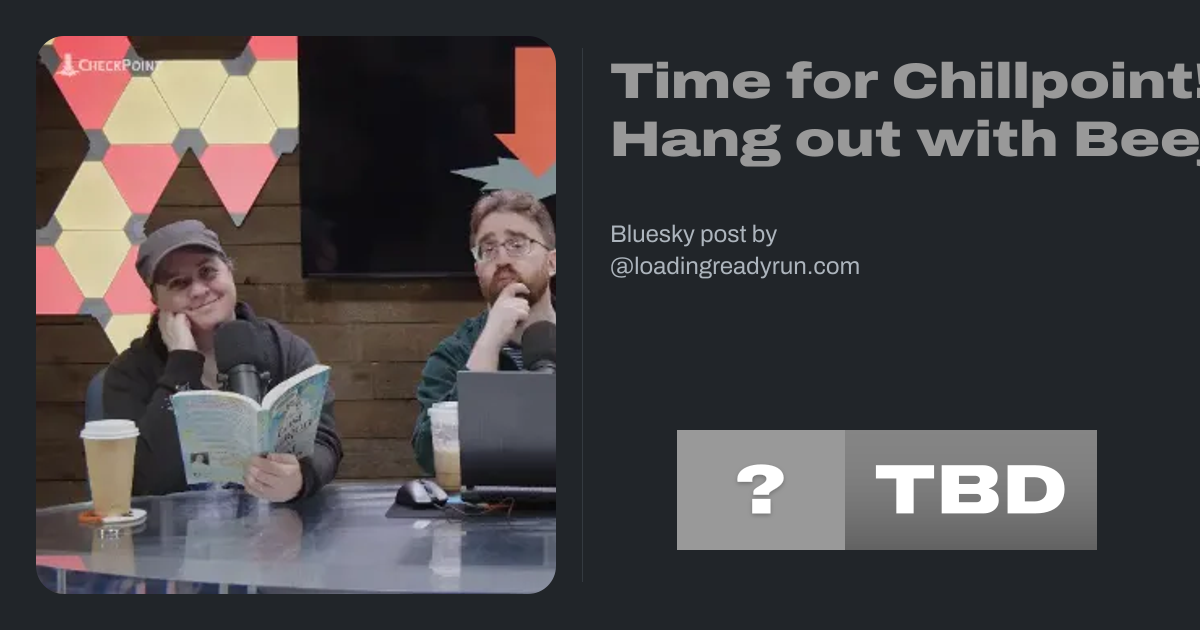 Time for Chillpoint! Hang out with Beej, Heather and Paul and chat about the week's gaming news twitch.tv/loadingready...
