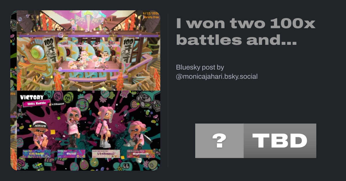 I won two 100x battles and 4-starred vheavy in one splatfest with the ign twitch.tv/kwite 😠I have no idea if kwite has a bsky account but I think he’d be proud