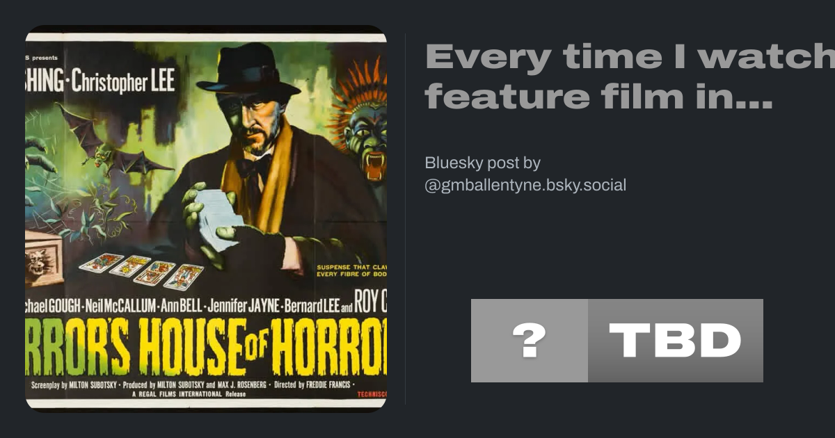 Every time I watch a feature film in 2026. No. 98, “Dr Terror’s House of Horrors” (1965) this afternoon on Legend Xtra. www.imdb.com/title/tt0059125/ #MyMovies2026 #DoctorTerrorsHouseOfHorrors ⭐️⭐️⭐️