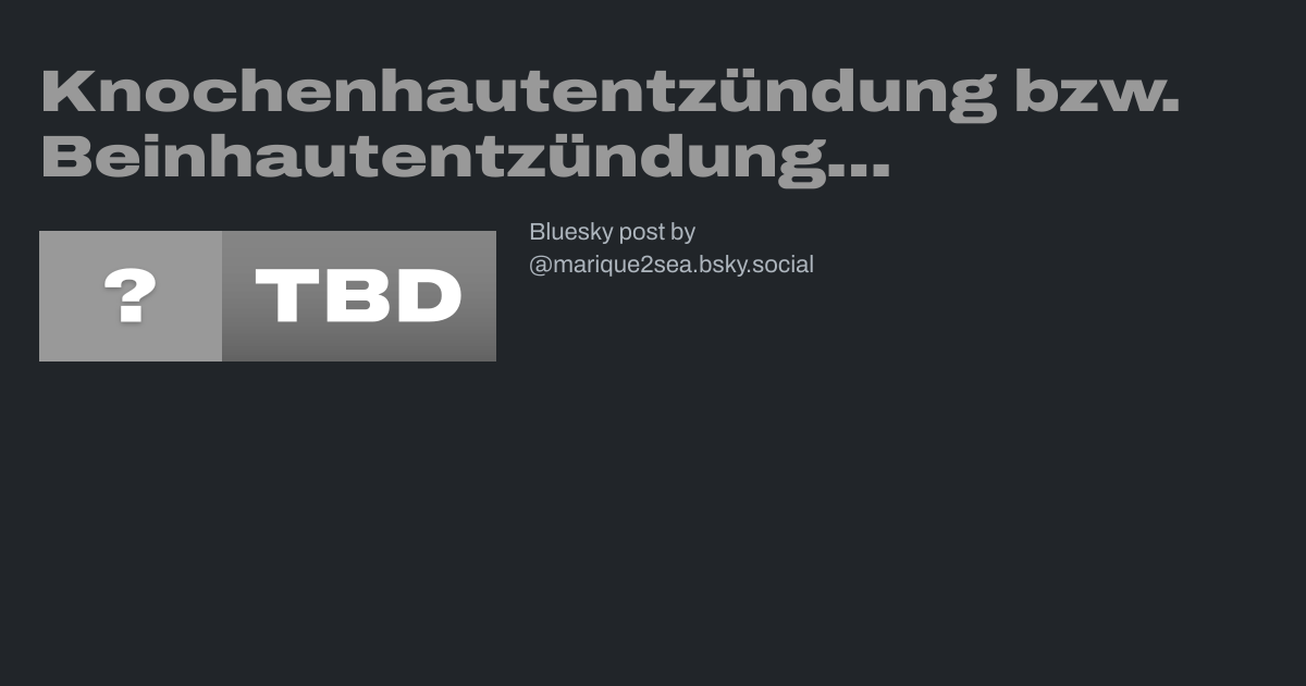 Knochenhautentzündung bzw. Beinhautentzündung vielleicht? Hatte das mal - Hölle. Noch immer angenehmer als Geburtserfahrung, aber trotzdem zum Sterben schmerzhaft. 😕 de.wikipedia.org/wiki/Periost...