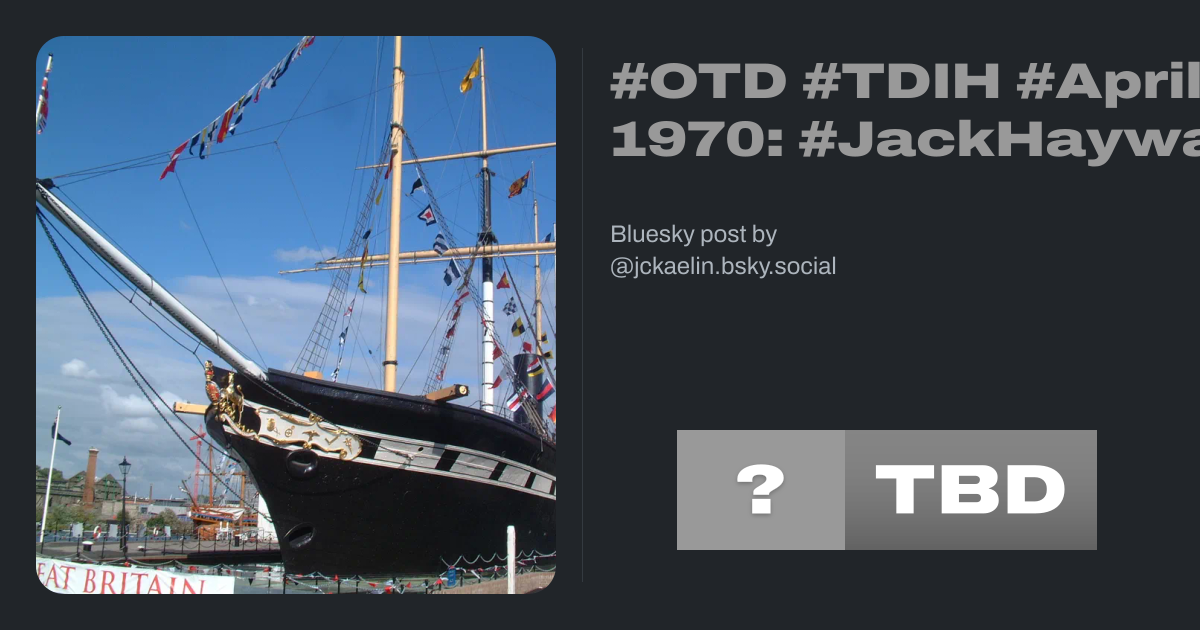 #OTD #TDIH #April13, 1970: #JackHayward, #WolverhamptonWanderers #football owner, raises #IsambardKingdomBrunel's steamship #SSGreatBritain, 1st ocean-going #IronHullShip/#ScrewPropellerShip, then the #WorldsLargestShip when launched on #July19, 1843.