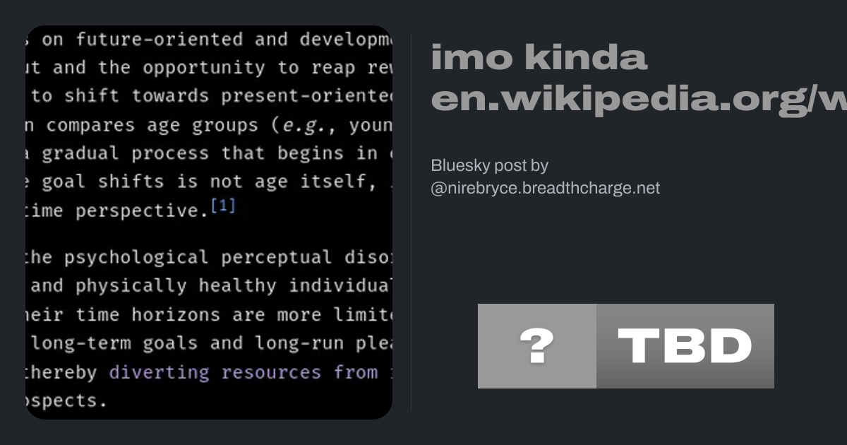 imo kinda en.wikipedia.org/wiki/Socioem..., but instead of life-planning time horizons, it's more that it's impossible to plan/build towards anything at all because of how chaotic things are