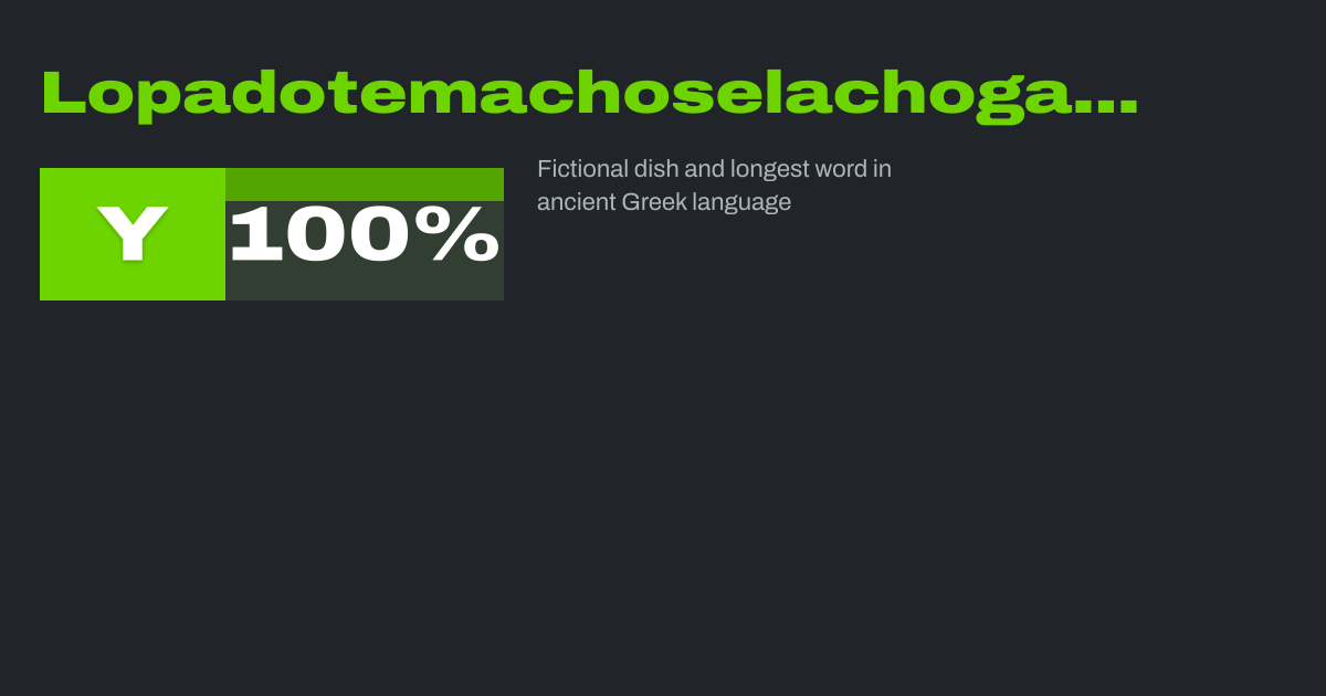 Lopadotemachoselachogaleokranioleipsanodrimhypotrimmatosilphiokarabomelitokatakechymenokichlepikossyphophattoperisteralektryonoptekephalliokigklopeleiolagoiosiraiobaphetraganopterygon is a fictional dish originating from Aristophanes' 391 B.C. comedy Assemblywomen, deriving from a transliteration of the Ancient Greek...
