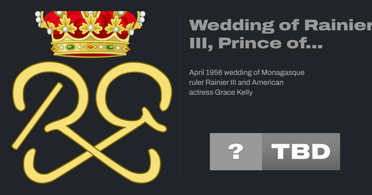 April 1956 wedding of Monagasque ruler Rainier III and American actress Grace Kelly