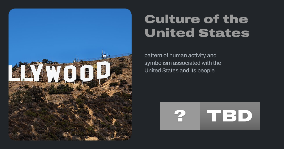 The culture of the United States of America, also referred to as American culture, encompasses various social behaviors, institutions, and norms in the United States, including forms of speech, literature, music, visual arts, performing arts, food, sports, religion, law, technology as well as other customs, beliefs, and forms of knowledge....