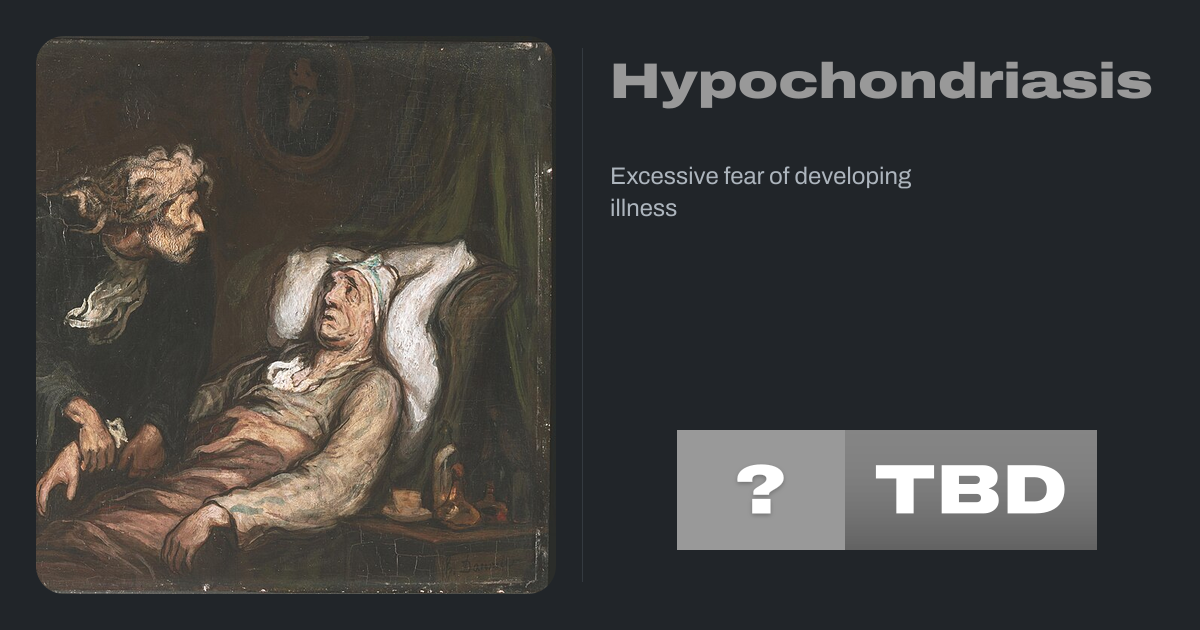 Hypochondriasis or hypochondria is a condition in which a person is excessively and unduly worried about having a serious illness. Hypochondria is an old concept whose meaning has repeatedly changed over its lifespan. It has been claimed that this debilitating condition results from an inaccurate perception of the condition of body or mind...
