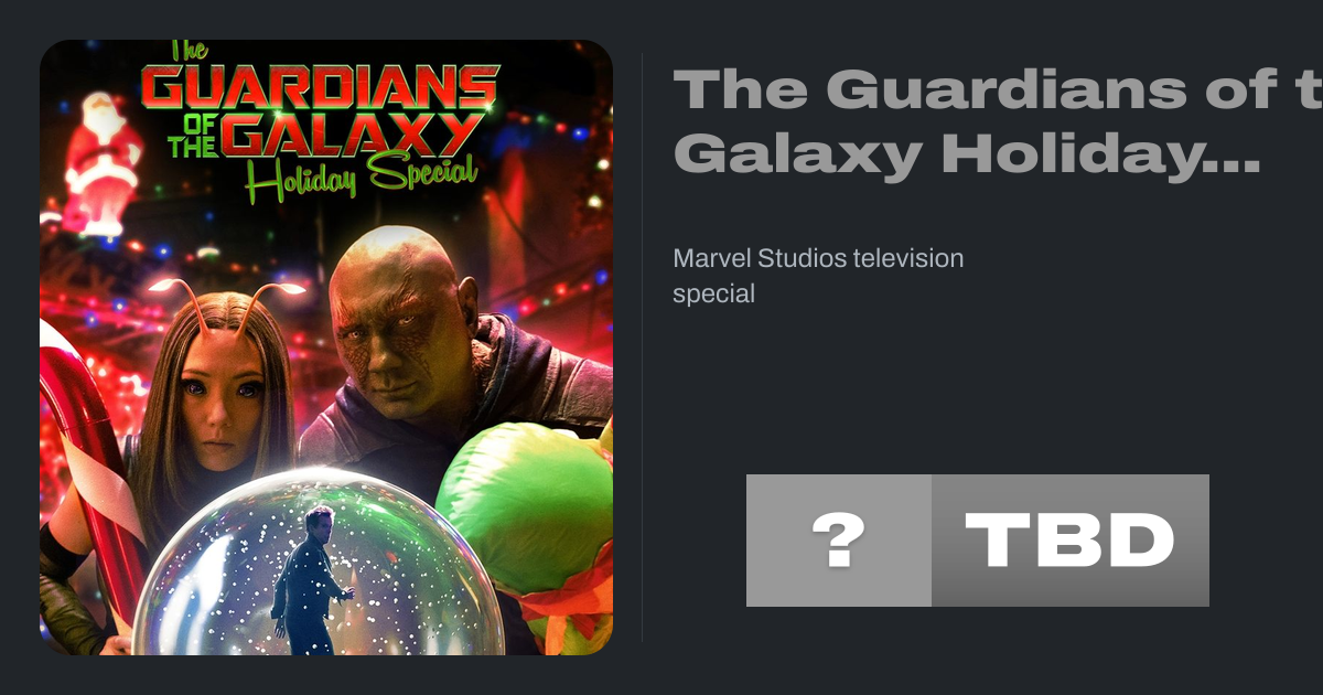 The Guardians of the Galaxy Holiday Special is an American television special written and directed by James Gunn for the streaming service Disney+, based on Marvel Comics featuring the superhero team Guardians of the Galaxy. It is the second Marvel Studios Special Presentation in the Marvel Cinematic Universe (MCU), sharing continuity with the...