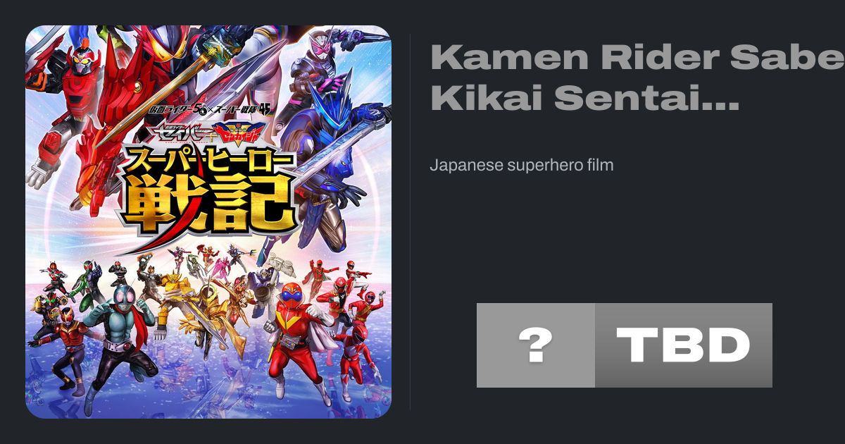 Saber + Zenkaiger: Super Hero Senki (セイバー+ゼンカイジャー スーパーヒーロー戦記, Seibā Zenkaijā Sūpā Hīrō Senki; Saber + Zenkaiger: Super Hero War Chronicle) is a 2021 Japanese superhero crossover film between the Kamen Rider and Super Sentai franchises and was released on July 22, 2021, in a double billing with a special film for the then-upcoming Kamen Rider...