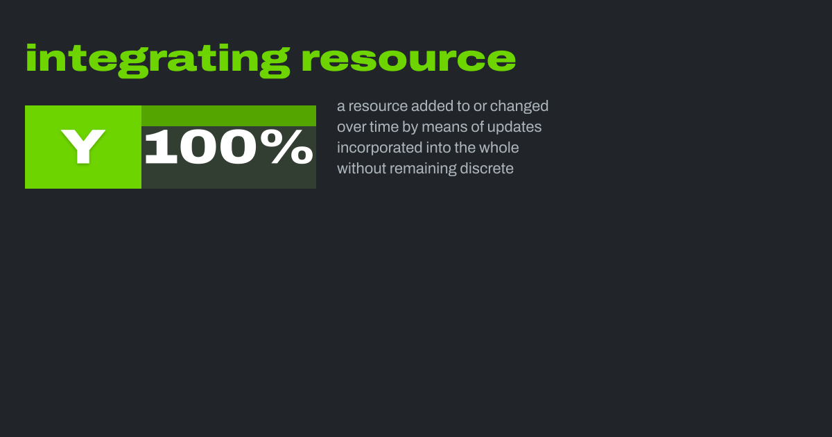 a resource added to or changed over time by means of updates incorporated into the whole without remaining discrete