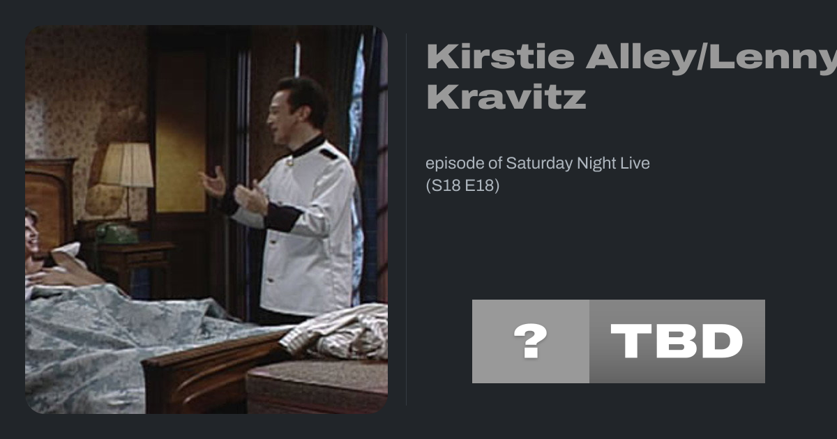 ""Rodney King Song: Fire Bad by Recurring SNL Characters for Unity"", ""Quinko's Mmmph Board Game Commercial"", ""SNL Cheers wannabes come to cheer Kirstie up"", ""Hotel staff loves the Bellissima wife at La Cantoria"", ""The Montel Williams Show"", ""Deep Thoughts by Jack Handey"", ""Kirstie Alley meets Zoraida, the NBC page"", ""The all...