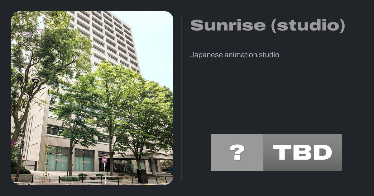 Sunrise (Japanese: サンライズ, Hepburn: Sanraizu; often stylized in all caps) is a Japanese animation studio, serving as the flagship division and the trade name for the IP Production Group unit of Bandai Namco Filmworks, a subsidiary of Bandai Namco Holdings. The division is responsible for the Sunrise label, focusing on animation production. Prior...