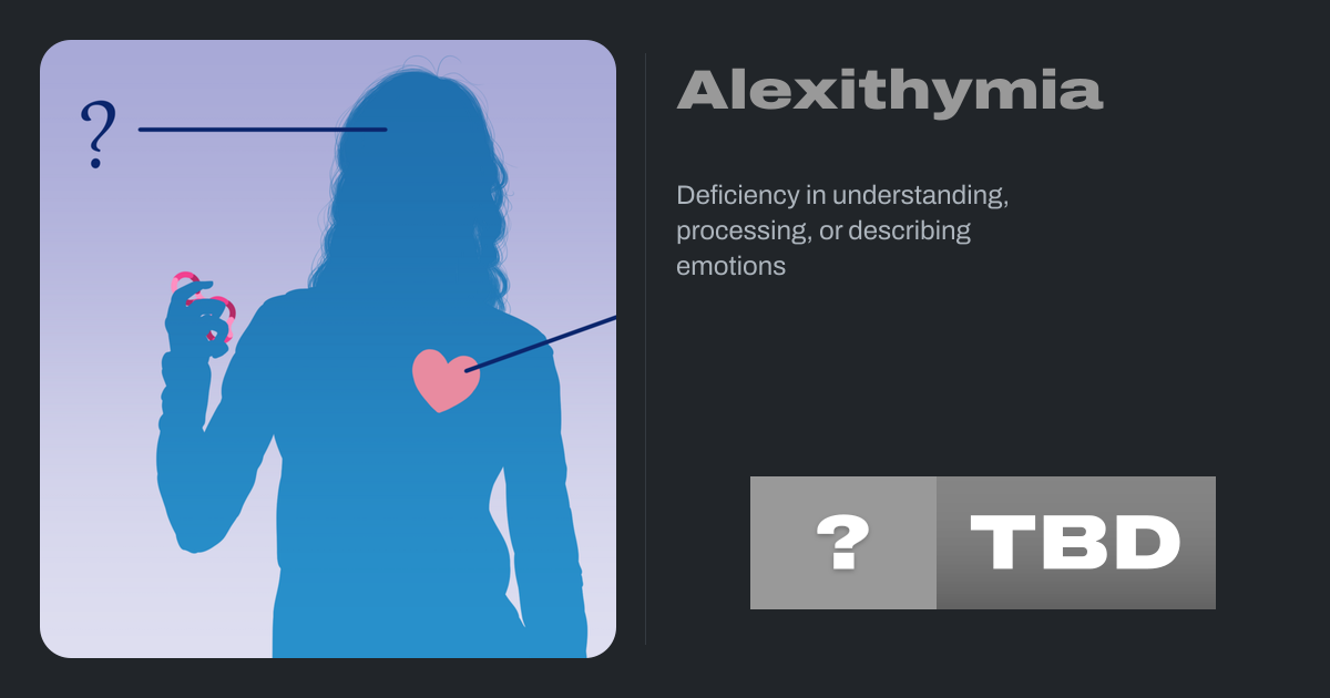 Alexithymia, also called emotional blindness, is a neuropsychological phenomenon characterized by not being able to process or describe one's emotions. Instead, some people with alexithymia express emotions nonverbally.