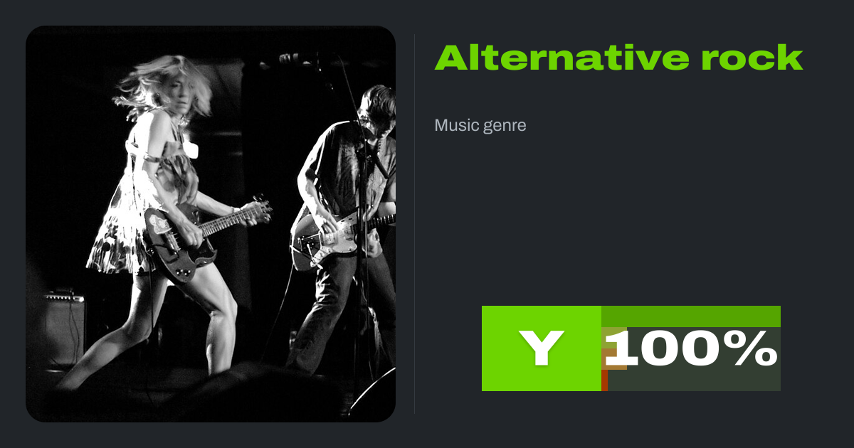 Alternative rock (also known as alternative music, alt-rock or simply alternative) is a category of rock music that evolved from the independent music underground of the 1970s. Alternative rock acts achieved mainstream success in the 1990s with the likes of the grunge subgenre in the United States, and the Britpop and shoegaze subgenres in the...